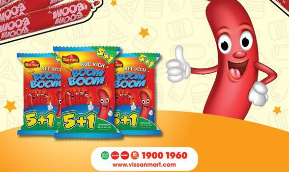 Sản phẩm Xúc xích Boom Boom của Cổ Phần Việt Nam Kỹ Nghệ Súc Sản (VISSAN) đã không còn xa lạ đối với các em nhỏ và người tiêu dùng Việt Nam. Sản phẩm nhận được rất nhiều sự yêu thích của người tiêu dùng nhờ vào hương vị thơm ngon đặc trưng từ thịt heo VietGAP nguyên chất cùng quy trình sản xuất hiện đại luôn đảm bảo chất lượng và an toàn, vệ sinh thực phẩm.