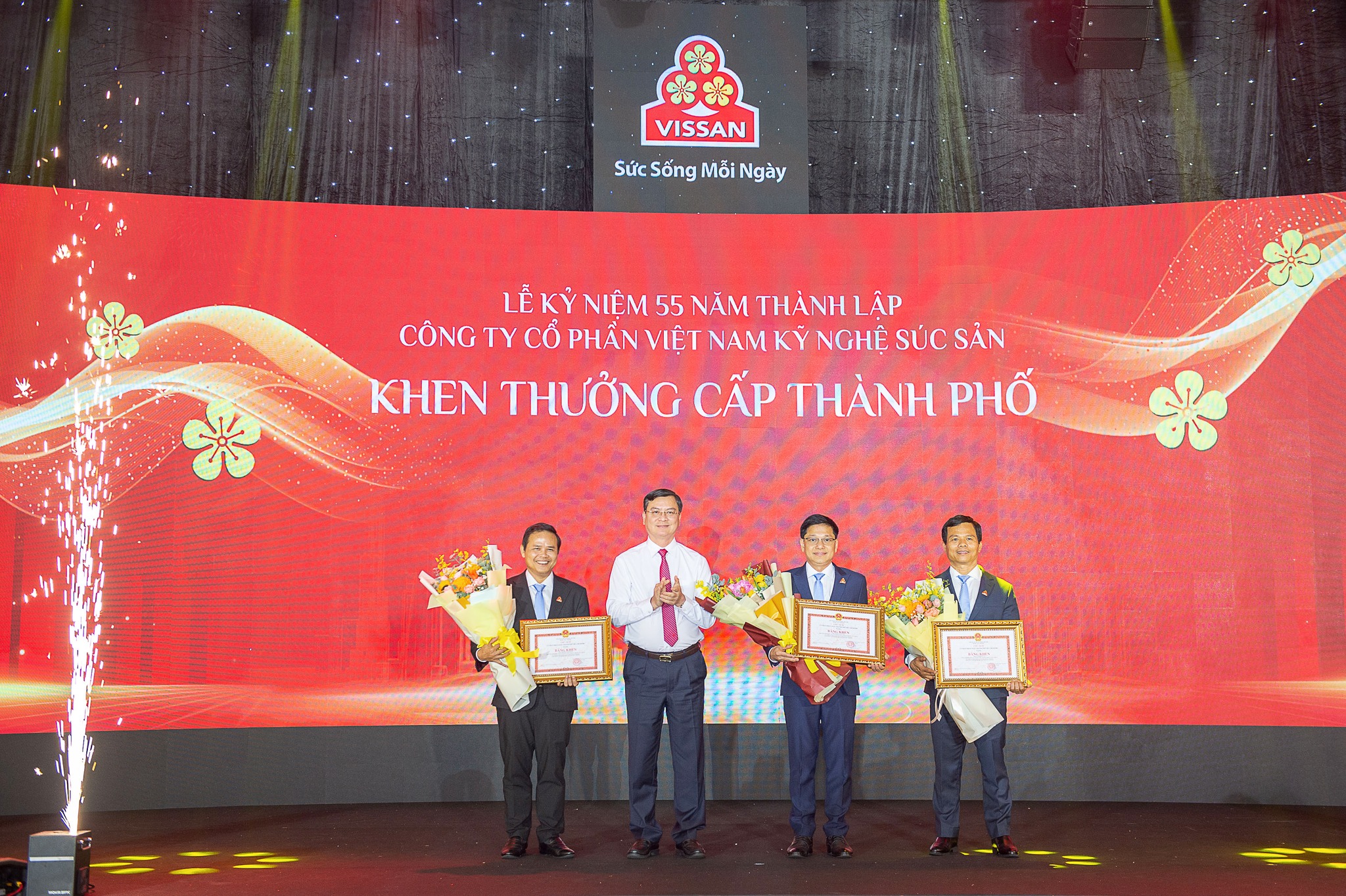 Tại buổi lễ long trọng, đại diện lãnh đạo Công ty VISSAN tự hào được ông Nguyễn Công Vinh - Phó Chủ tịch UBND TP.HCM trao tặng bằng khen Cấp Thành Phố và đồng thời được nhận bằng khen cấp Công ty từ ông Nguyễn Hữu Nghĩa và ông Lâm Quốc Thanh - Đại diện Tổng Công ty Thương mại Sài Gòn TNHH MTV.