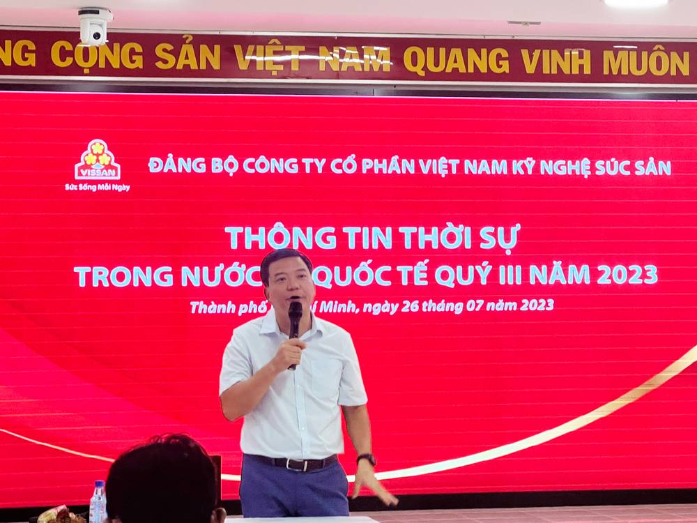 Nhằm thực hiện tốt công tác xây dựng Đảng và các nhiệm vụ chính trị của Đảng Bộ Công ty VISSAN, chiều ngày 26/07/2023, Đảng ủy Công ty VISSAN đã tổ chức Hội nghị Thông tin về tình hình thời sự trong nước và quốc tế tại Hội trường Công ty.