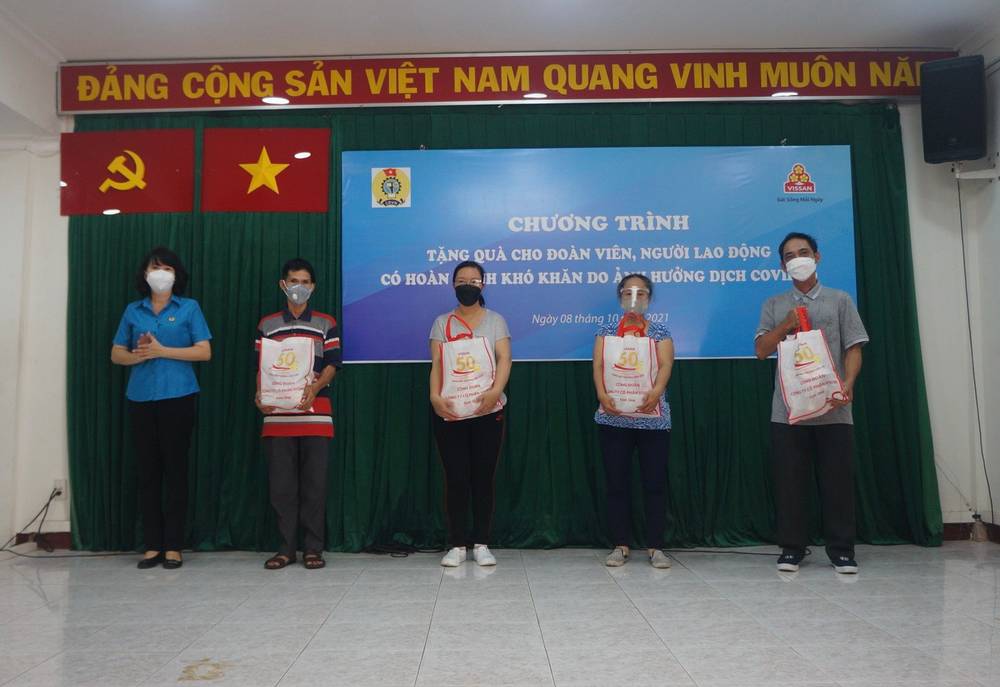 Thấu hiểu những khó khăn, vất vả của đoàn viên, người lao động Thành phố nói chung và Công ty VISSAN nói riêng, Ban lãnh đạo Công ty VISSAN đã quyết định hỗ trợ với tổng số tiền hơn 800 triệu đồng cho đoàn viên, người lao động bị ảnh hưởng bởi dịch bệnh COVID-19. Cụ thể, sáng ngày 08/10/2021, 1.000 túi an sinh và 200 phần quà đã được trao đến người lao động tại Công ty. Ngoài ra, Ban lãnh đạo Công ty cũng hỗ trợ chi phí cho đoàn viên, người lao động bị nhiễm Covid-19 và đại diện gia đình của người lao động không may bị mất do dịch bệnh Covid-19. Các phần quà hỗ trợ tuy không nhiều nhưng qua đó đã kịp thời cổ vũ, động viên thêm cho người lao động yên tâm công tác hoàn thành “nhiệm vụ kép” vừa sản xuất – vừa chống dịch.